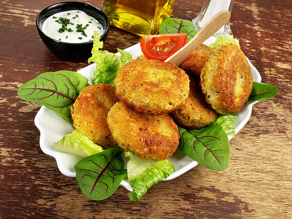 Mit Blattsalat und Kräuter/Gurkenjoghurt servieren.