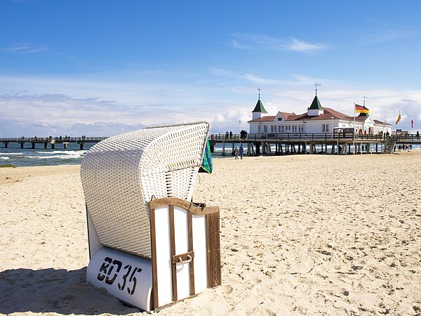 The seaside resort of Ahlbeck on the island of Usedom is one of the famous “Imperial Spas” and a true symbol of classic Baltic Sea holidays. The town’s landmark is its historic pier dating back to 1898 – the oldest preserved pier in Germany. Along the elegant beachfront promenade, magnificent villas in traditional spa architecture line up side by side, giving Ahlbeck its distinctive and charming atmosphere. The wide sandy beach and the fresh Baltic Sea air make it a favorite destination for those seeking relaxation.