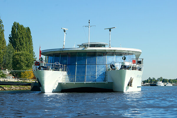 Sie wollten schon immer mal sehen, wie der Katamaran mit 9 m Bugverglasung von innen aussieht? Genießen Sie die virtuelle Reise durch das einzige Kreuzfahrtschiff mit österreichischer Flagge auf der Donau.