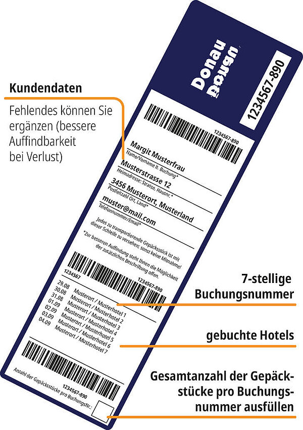 7-stellige Buchungsnummer: Eindeutige Zuordnung Ihres Gepäcks zur Reise.